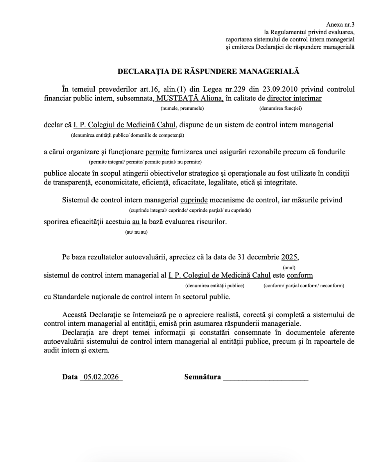 Directorul I.P. Colegiului de Medicină Cahul